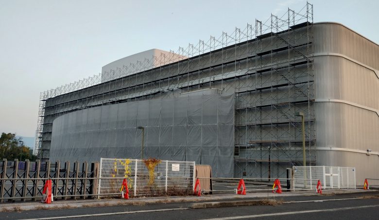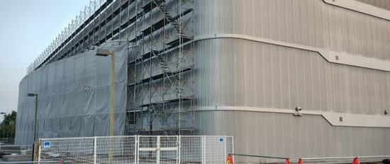 先日通りかかると、外観に足場工事が入っいましたので