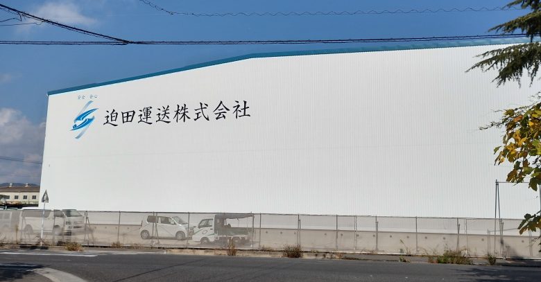 壁面には「迫田運送株式会社」の文字が大きく書かれていますので