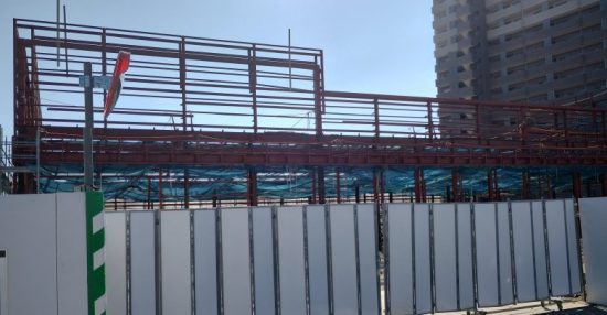 鉄骨が組まれており、